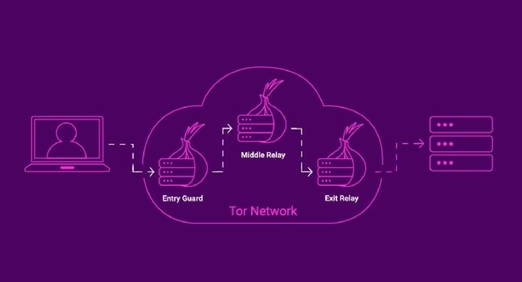 Um zu verstehen, was bei der BKA-Operation tatsächlich passiert ist, muss man zunächst das Grundprinzip einer Timing-Attacke verstehen. Tor funktioniert, indem es den Datenverkehr der Nutzer durch mehrere Server (sogenannte Relays oder Nodes) leitet, typischerweise über eine Kette von mindestens drei Servern: