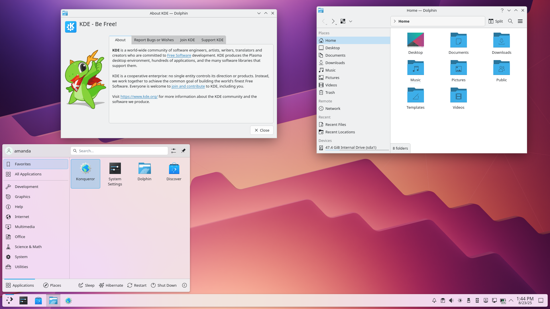 - Ein vollständiges Software-Ökosystem: Dolphin (Dateimanager), Gwenview (Bildbetrachter), Okular (PDF), Kate (Editor) und viele weitere Programme sind direkt integriert.